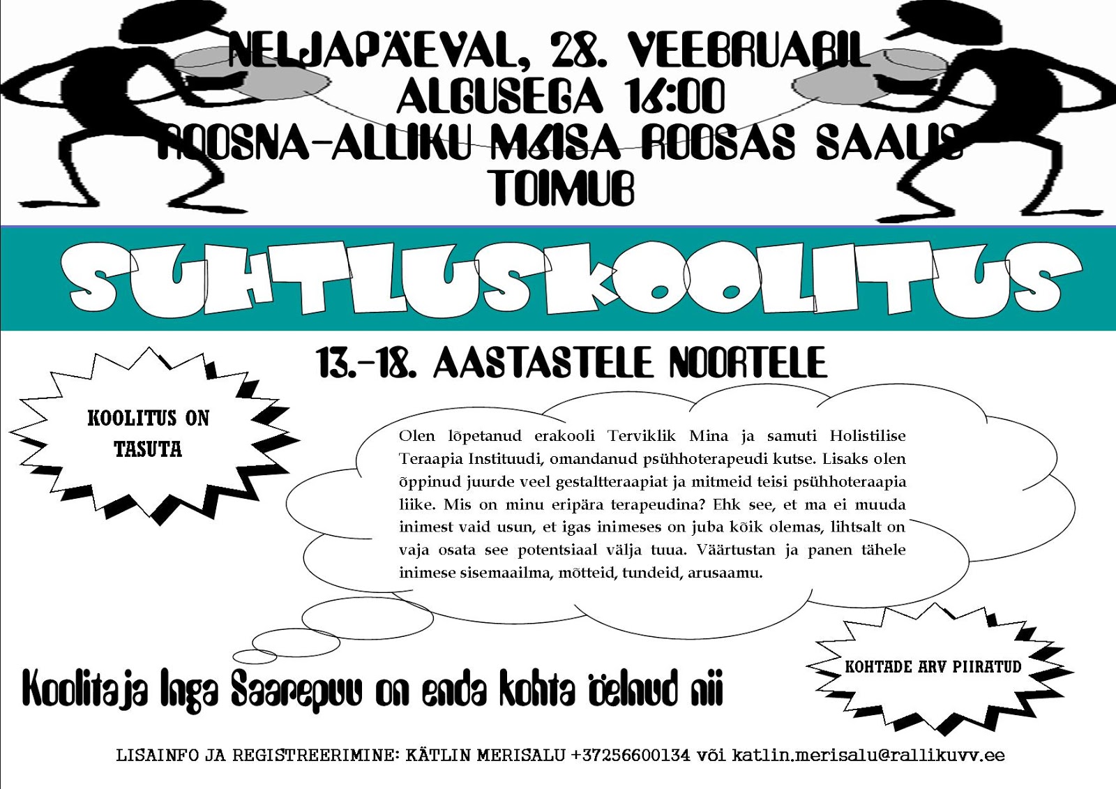 Teisipäeva ning kolmapäeva õhtutel, 26.-27. veebruaril, võis Roosna-Alliku Noortetoa ruumidest kuulda valju kopsimist, õmblusmasina urinat ning kääride klõbinat. Toimusid käsitööpäevad, mille käigus said vanad ja väsinud diivanid uue ilme: eemaldati seljatoed ja õmmeldi neile lapitehnikas katted.